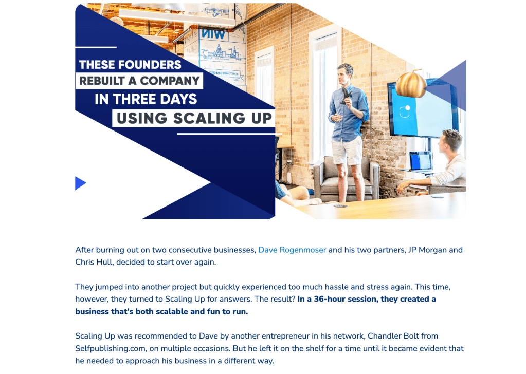 Scaling Up was recommended to Dave by another entrepreneur in his network, Chandler Bolt from Selfpublishing.com, on multiple occasions. But he left it on the shelf for a time until it became evident that he needed to approach his business in a different way.